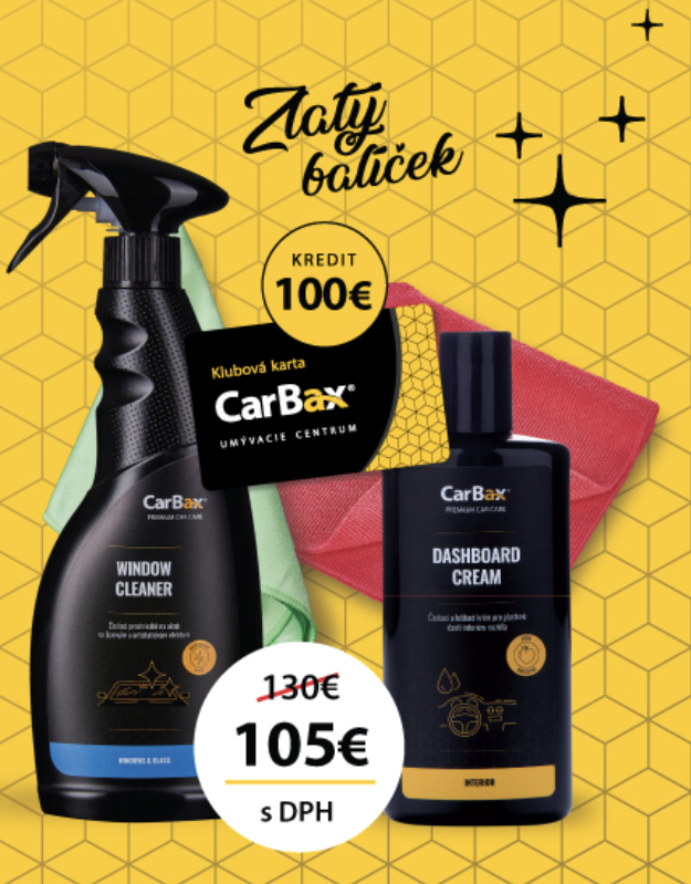 Zvýhodnený darčekový balíček s klubovou kartou pre CarBax Nitra - Chrenová a CarBax Nitra - Mlynárce, autokozmetikou a príslušenstvom pre ich aplikáciu.